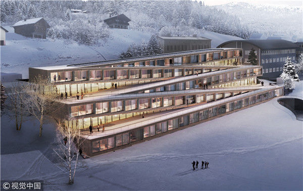 2018年5月30日訊,Bjarke Ingels Group ( BIG )將在瑞士新建一家酒店,成“之”字形的屋頂同時(shí)也是滑雪道。酒店占地 70000 平方英尺,由五個(gè)連續(xù)的“之”字形部分組成。在建筑外部,它們同時(shí)也是一條從屋頂通向地面的路徑。冬日里覆雪的屋頂就成為了雪道,它直通向鐘表匠小路( Watchmaker's Path )——這一通道是經(jīng)歷史上的制表要塞啟發(fā)而建——延伸了原有的滑雪區(qū)域。