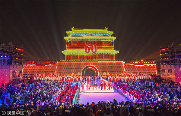 2017年12月31日,北京,2018北京新年倒計(jì)時(shí)活動(dòng)暨北京冰雪文化旅游節(jié)開幕式現(xiàn)場(chǎng)。倒數(shù)60秒