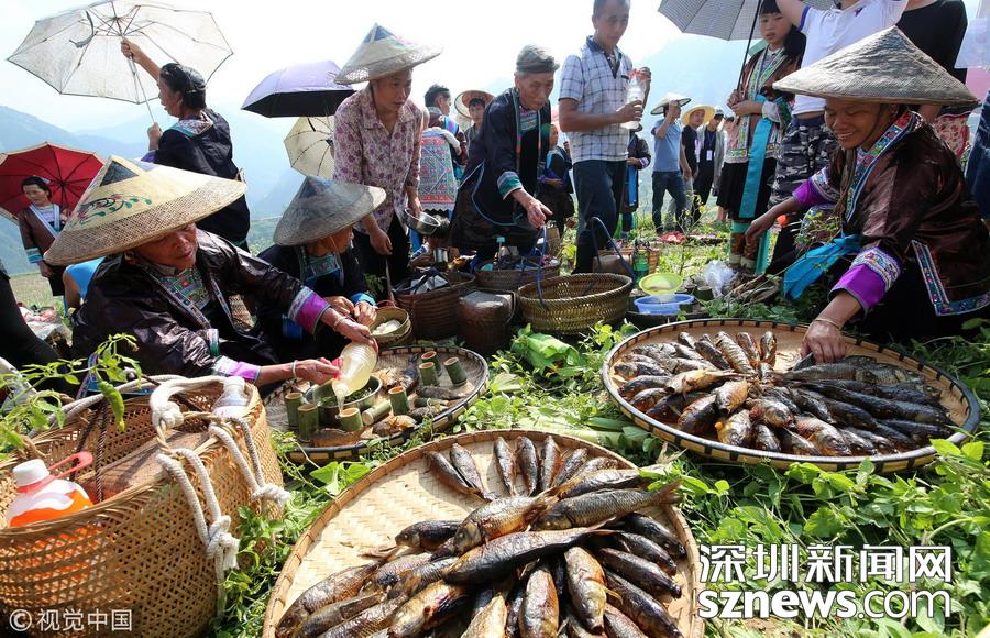 2018年11月19日,侗族同胞在參加貴州省從江縣慶云鎮(zhèn)“凍魚節(jié)”祭薩儀式。 據(jù)了解,“凍魚節(jié)”是當(dāng)?shù)亍笆稀倍弊逋赜械募漓雮鹘y(tǒng)節(jié)日,定在每年農(nóng)歷的10月12日,是人們紀(jì)念祖先遷徙而舉辦的規(guī)模盛大的節(jié)日,至今已有500多年的歷史。節(jié)日期間,主人邀請(qǐng)親友聚餐、參與慶?;顒?dòng),共享豐收喜悅。