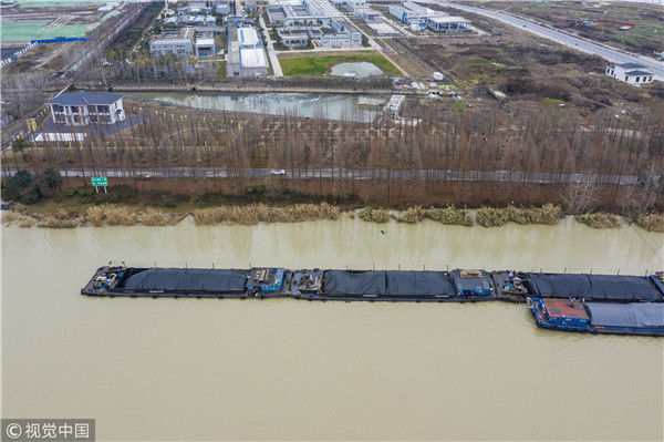 2018年12月27日,江蘇淮安,航拍京杭大運河淮安段冬日景色。