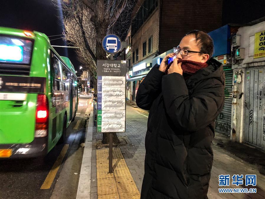 12月28日,一名行人在韓國首爾西江大學(xué)附近的一個公交站打電話。據(jù)韓國氣象部門28日消息,全國各地當(dāng)天迎來強寒潮,首爾地區(qū)體感溫度達零下19.3攝氏度,中部地區(qū)和南部地區(qū)已發(fā)布低溫預(yù)警。新華社記者 王婧嬙 攝