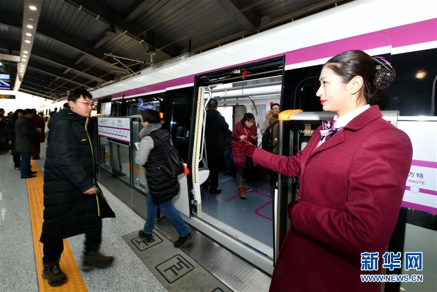 2019年1月1日,工作人員在濟南軌道交通1號線創(chuàng)新谷站引導(dǎo)乘客。