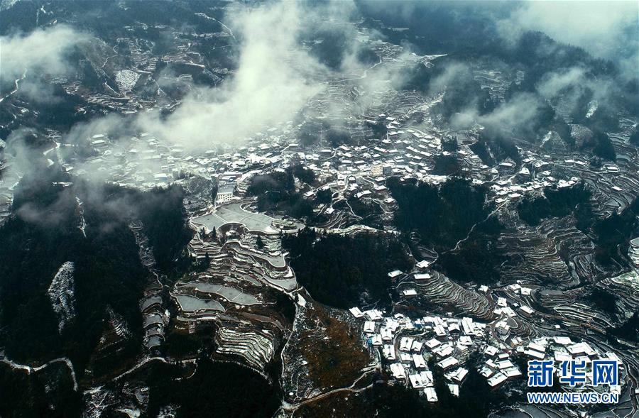 這是廣西融水苗族自治縣山區(qū)景色(2019年1月1日無人機拍攝)。近日,受冷空氣影響,廣西融水苗族自治縣持續(xù)低溫并伴有降水。新華社記者 黃孝邦 攝