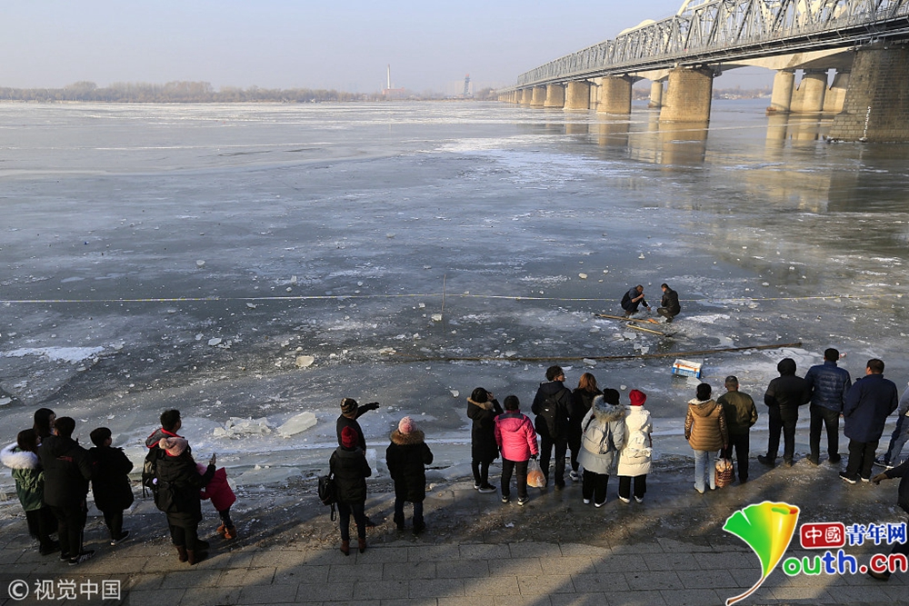 岸邊,不少游客圍觀。 圖片來源:視覺中國