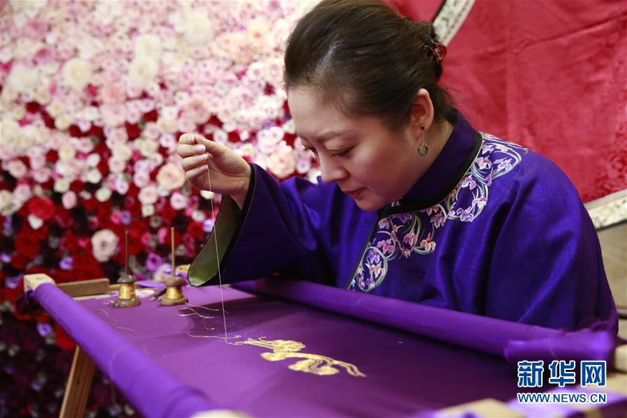 1月12日,在北京“碧泓云想”服裝設(shè)計(jì)工作室,高定服裝設(shè)計(jì)師畢紅在為中式服裝制作刺繡紋樣。畢紅設(shè)計(jì)的中式服裝以棉、麻、真絲等面料為主。春節(jié)來臨,其團(tuán)隊(duì)加班加點(diǎn)為顧客趕制中式服裝。