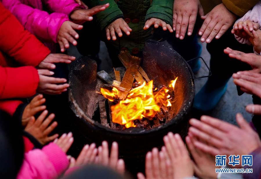 1月3日,章站亮和學(xué)生們一起圍著點(diǎn)燃的火爐取暖。 新華社記者 胡晨歡 攝