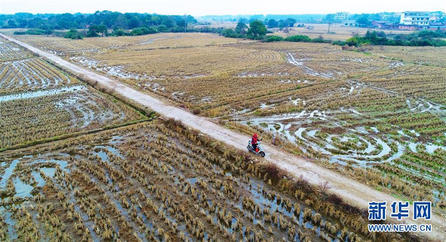 1月3日,章站亮騎摩托行駛在前往學(xué)校的路上(無(wú)人機(jī)拍攝)。 新華社記者 胡晨歡 攝