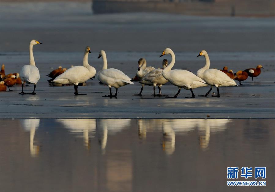 1月13日,天鵝等水鳥在張家口市宣化區(qū)洋河水庫休憩。 近年來,河北省張家口市宣化區(qū)立足京津冀生態(tài)涵養(yǎng)區(qū)的功能定位,不斷加大環(huán)境治理和生態(tài)功能修復力度,使洋河水庫及周邊濕地成為天鵝、大雁、野鴨、灰鶴等多種鳥類南北遷徙中的棲息地。 新華社記者楊世堯攝