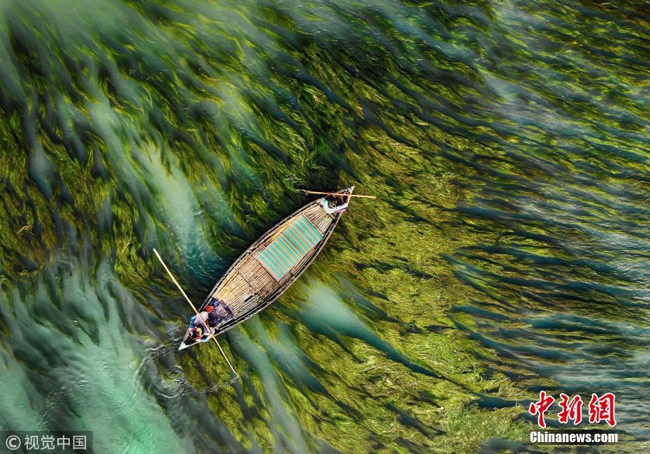 中國(guó)新聞網(wǎng)1月14日訊(具體拍攝時(shí)間不詳),孟加拉國(guó)烏拉帕拉,漁船在水流和藻類的映襯下前行,畫(huà)面看起來(lái)就像水彩畫(huà)一般。圖片來(lái)源:視覺(jué)中國(guó)