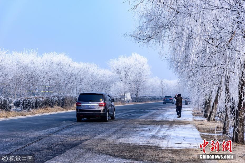 河北定州現(xiàn)霧凇景觀 吸引路人駐足拍照留念