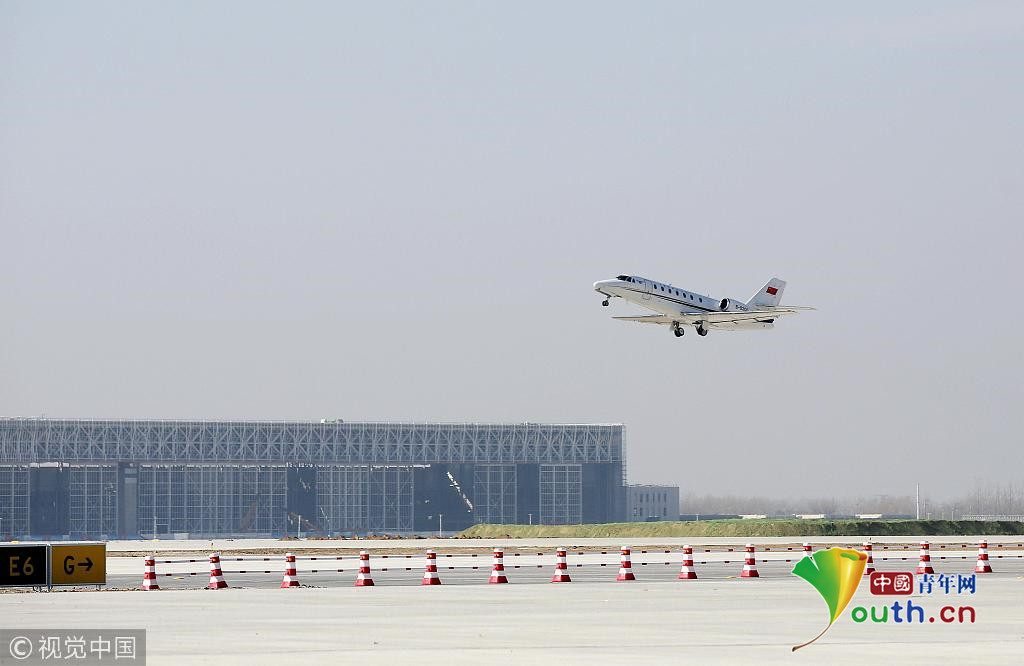2019年1月22日,首架校驗(yàn)飛機(jī)掠過(guò)北京大興國(guó)際機(jī)場(chǎng)上空。視覺(jué)中國(guó)