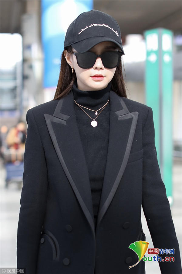 沈夢(mèng)辰全黑look又颯又美 黑超遮面甜妹變酷girl