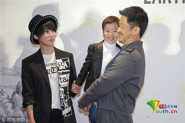 幸福一家!謝楠助陣老公電影兒子嘟嘴呆萌搶鏡