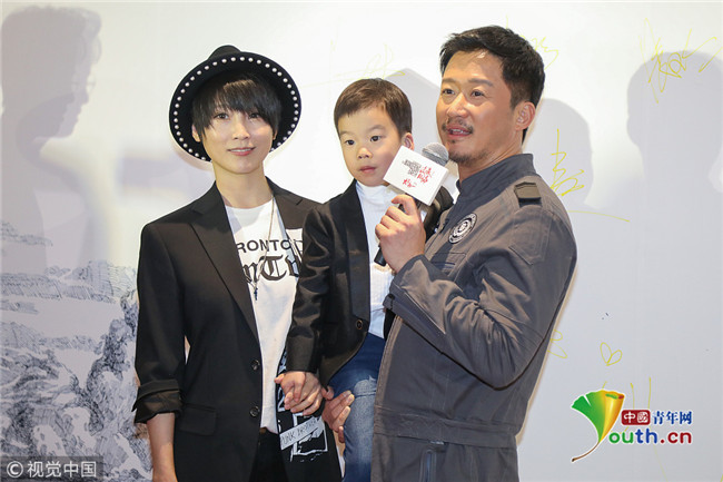 幸福一家!謝楠助陣老公電影兒子嘟嘴呆萌搶鏡