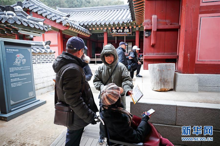 2月6日,在韓國水原市,幾名中國游客在水原華城行宮內(nèi)研究導(dǎo)覽圖。 雖然中國人過春節(jié)的傳統(tǒng)是返鄉(xiāng)回家,但越來越多的國人選擇在春節(jié)期間走出國門,利用春節(jié)假期外出旅游。 新華社記者 王婧嬙 攝