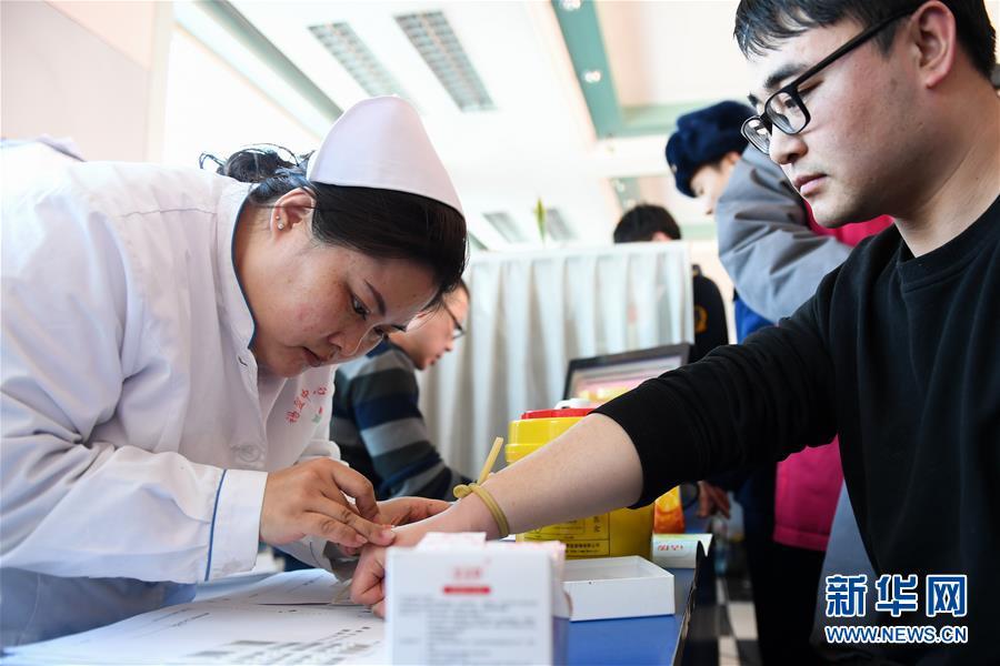 2月24日,志愿者在錫林郭勒盟中心血站排隊獻血。 內(nèi)蒙古自治區(qū)錫林郭勒盟“2·23”重大事故傷者正在錫林郭勒盟醫(yī)院、錫林郭勒盟蒙醫(yī)醫(yī)院接受救治。因用血需求量大,當?shù)匮獛鞄齑嬉欢鹊陀诰渚€。在當?shù)卣h下,各單位職工、市民紛紛前往錫林郭勒盟中心血站獻血。截至24日16時,已有220余名志愿者完成獻血,采集全血6.8萬毫升,機采血小板9個治療量。 新華社記者 劉磊 攝