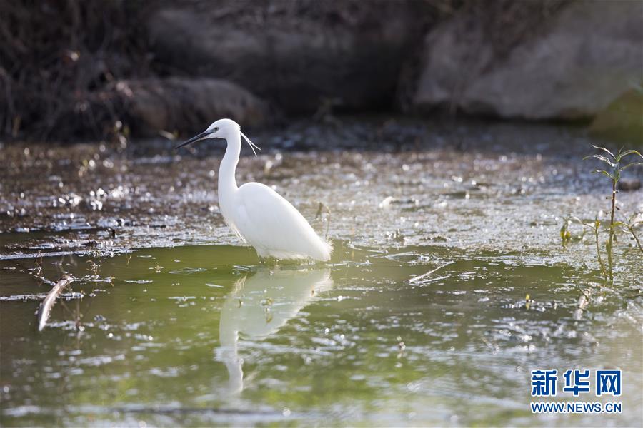 3月7日,在以色列阿格蒙胡拉鳥(niǎo)類(lèi)和自然公園,一只白鷺在覓食。新華社記者郭昱攝
