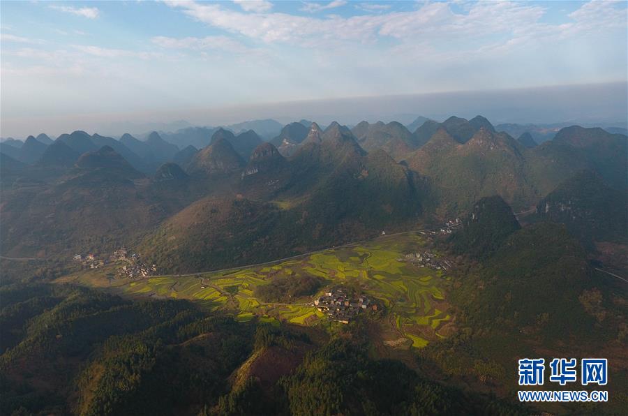 廣西融安縣東起鄉(xiāng)長豐村的田園春色(3月10日無人機拍攝)。 近日,隨著氣溫持續(xù)回升,廣西融安縣境內(nèi)的油菜花開放,春意盎然。 新華社記者 黃孝邦 攝