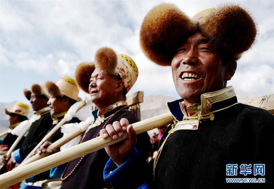 3月16日,山南市乃東區(qū)克松社區(qū)居民在開耕儀式上。 當(dāng)日,西藏各地男女老幼身著節(jié)日盛裝,駕著一輛輛由彩旗、花朵裝扮一新的拖拉機,涌向待墾的農(nóng)田,載歌載舞迎來一年一度的開耕儀式。 新華社記者 普布扎西 攝