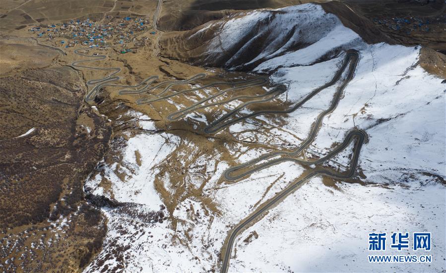 通往甘丹寺的崎嶇山路(4月8日無(wú)人機(jī)拍攝)。 新華社記者普布扎西攝