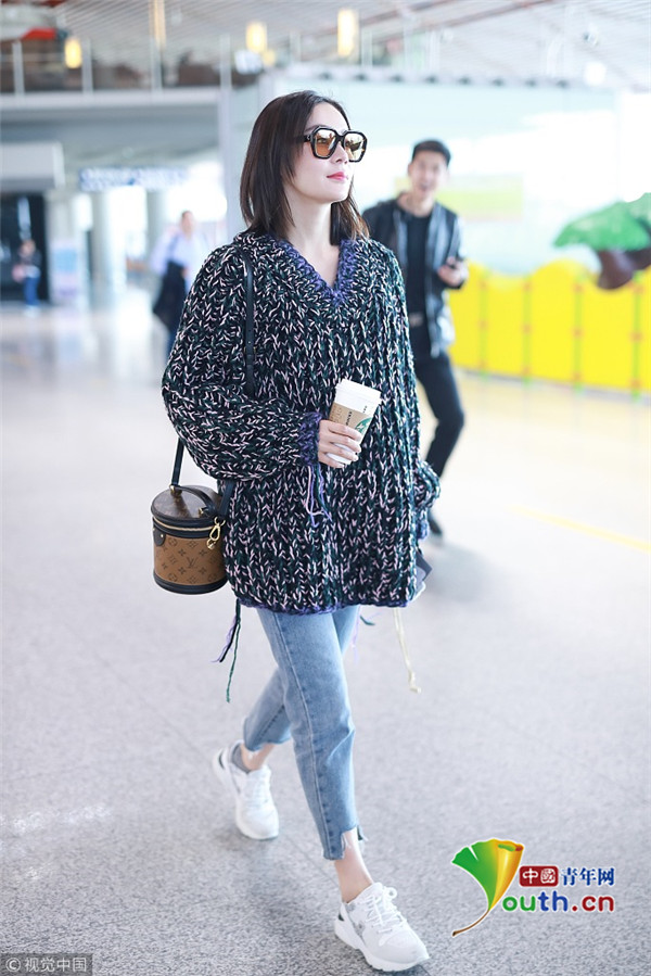 2019年4月10日,北京,袁姍姍現(xiàn)身機(jī)場。她穿碎花毛衣低調(diào)玩文藝,戴茶色墨鏡手捧咖啡,露腳踝美腿纖細(xì),休閑打扮隨意又愜意,時尚有型舒適十足。