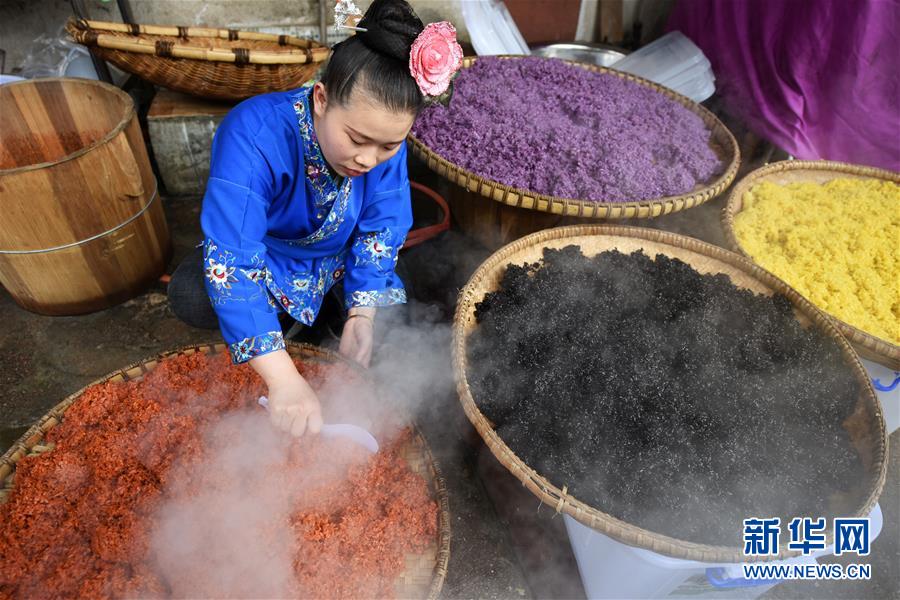 苗族姑娘趕制“姊妹飯”
