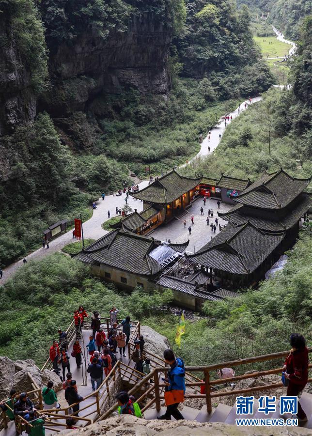 游客在天生三橋景區(qū)游覽(3月27日攝)。 隨著天氣轉(zhuǎn)暖,重慶武隆天生三橋景區(qū)風(fēng)景如畫,氣勢磅礴的天生石橋和綠意盎然的山林相映成趣,吸引眾多游客前來踏春賞景。 新華社記者劉潺攝