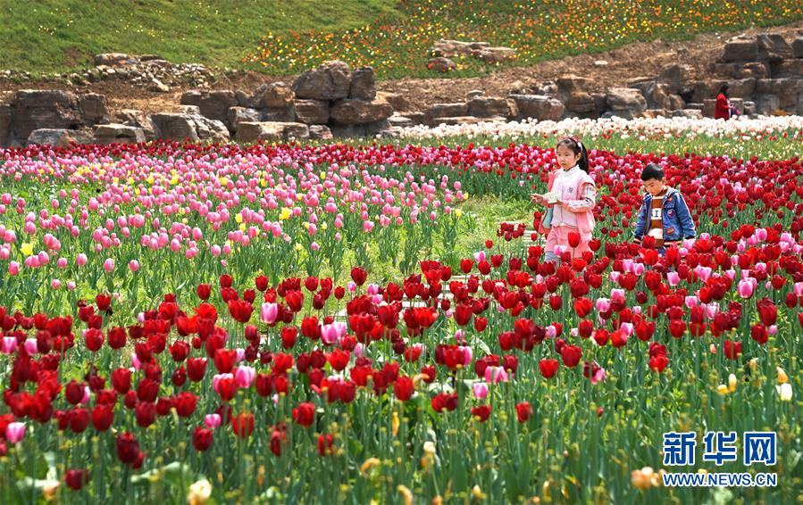 4月14日,游客在位于湖北省十堰市茅箭區(qū)的秦巴生態(tài)植物園內(nèi)游玩。近日,位于湖北省十堰市茅箭區(qū)的秦巴生態(tài)植物園內(nèi),200萬株郁金香競相開放,吸引游客前來賞花游覽。 新華社記者 程敏 攝