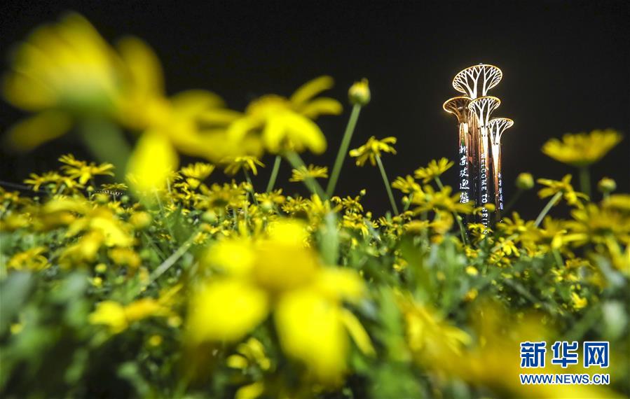 4月26日,北京中軸線上演“空間光影秀”。 新華社記者 殷剛 攝