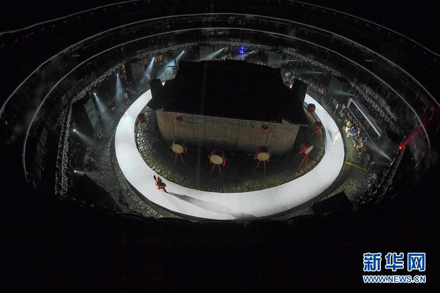4月27日,表演結(jié)束后,模特在向觀眾致意。 當(dāng)日,土樓光語國際時(shí)尚大秀在福建省南靖縣的土樓裕昌樓內(nèi)舉行。這場融匯文化、時(shí)尚與旅游元素的大秀,通過傳統(tǒng)與時(shí)尚的有機(jī)融合,展現(xiàn)南靖土樓及文化的魅力和風(fēng)采。 新華社記者魏培全攝