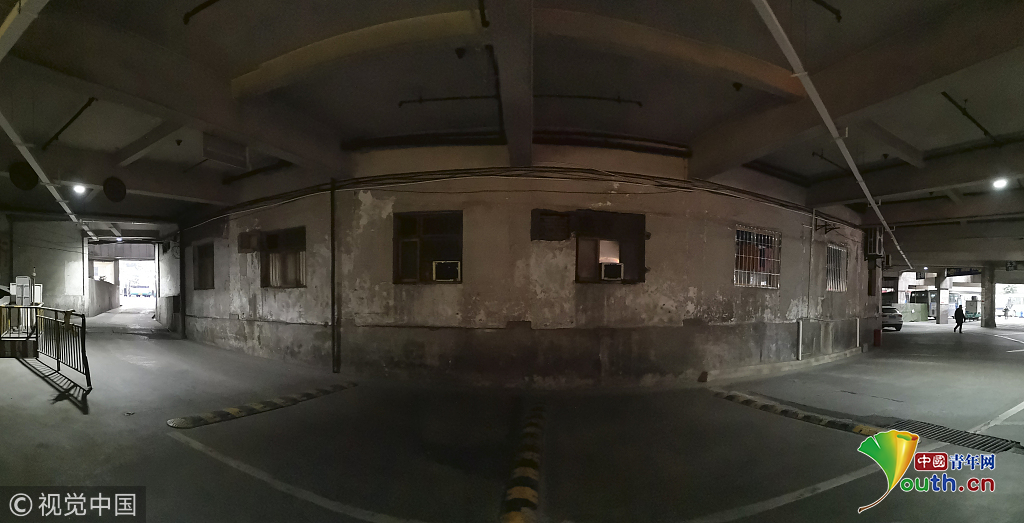 2018年12月6日,重慶江北紅旗河溝汽車站內(nèi),有一棟獨特的八層圓環(huán)狀建筑,底層每天有不少進出站的客車通行。據(jù)悉,這棟樓建于1990年,曾經(jīng)是車站旅館,如今一、二兩層用于車站辦公,其余樓層已廢棄。為確保安全,三層以上已經(jīng)被封鎖。圖為公交車穿過8層空心圓筒樓。徐勇/視覺中國