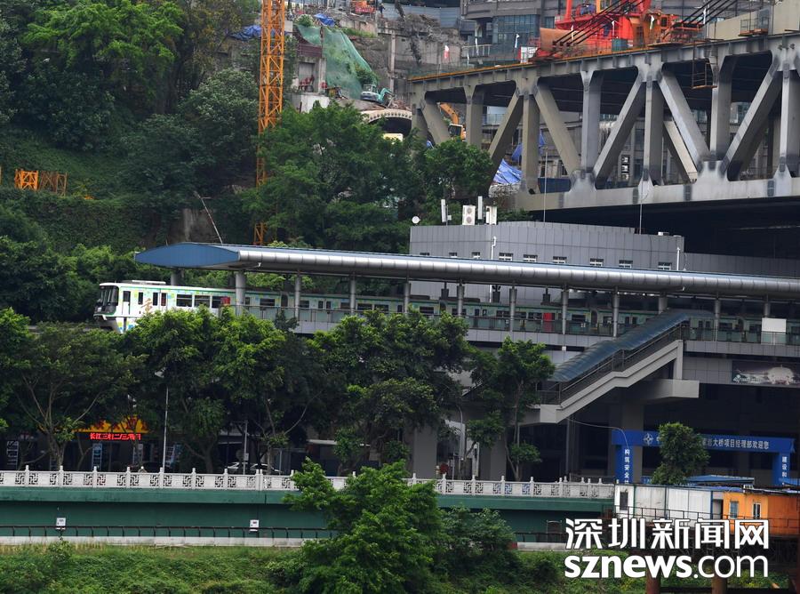 主橋鋼桁梁共44個節(jié)段,用鋼量約2.4萬噸,高栓63萬套。主橋上部結(jié)構(gòu)采用雙層橋面鋼桁梁形式,上層為雙向6車道及兩側(cè)人行道,下層為雙線城市軌道交通十號線,是國內(nèi)首個把軌道換乘站建在橋面上的公軌兩用橋。而在曾家?guī)r嘉陵江大橋渝中區(qū)橋頭正下方,則是重慶軌道交通二號線的曾家?guī)r站,該線路也是重慶最早投入運(yùn)行的軌道交通線路。