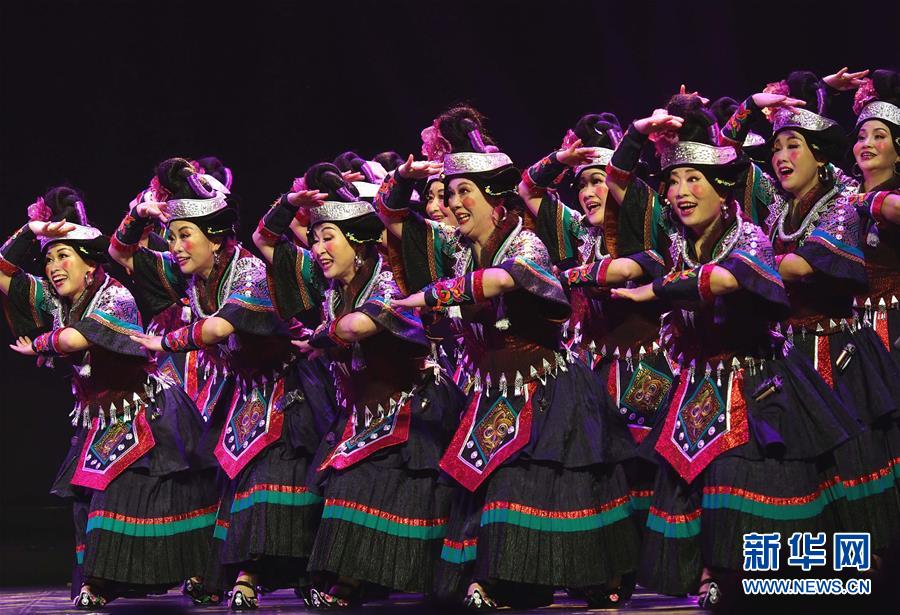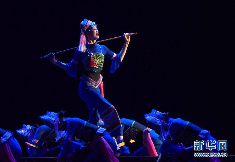 5月16日,在第十八屆群星獎決賽舞蹈類作品比賽中,演員在表演《苗家阿婆笑哈哈》。 當(dāng)日,作為第十二屆中國藝術(shù)節(jié)的重要內(nèi)容,第十八屆群星獎決賽在上海東方藝術(shù)中心啟動。84個入圍決賽作品將按照舞蹈、音樂、戲劇、曲藝4個門類進行7場比賽,最終評出20個獲獎作品。 新華社記者 任瓏 攝