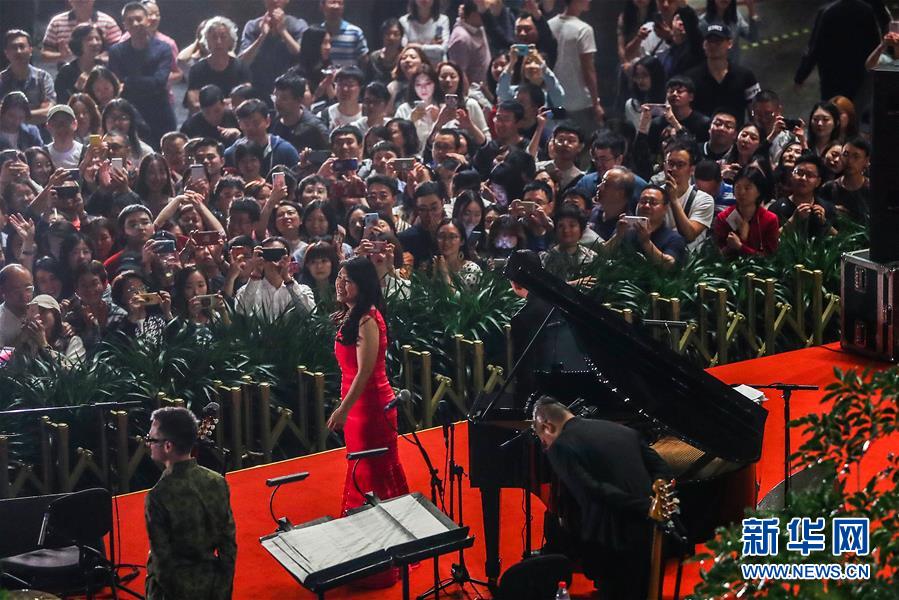 5月19日凌晨,歌手小野麗莎在北京國家大劇院“午夜玫瑰”爵士樂專場音樂會結(jié)束后攜樂團謝幕。 5月18日晚,作為亞洲文化展演活動的演出之一,著名爵士歌手小野麗莎攜樂團首次登臺國家大劇院,亮相“午夜玫瑰”爵士樂專場音樂會。 新華社記者 張玉薇 攝