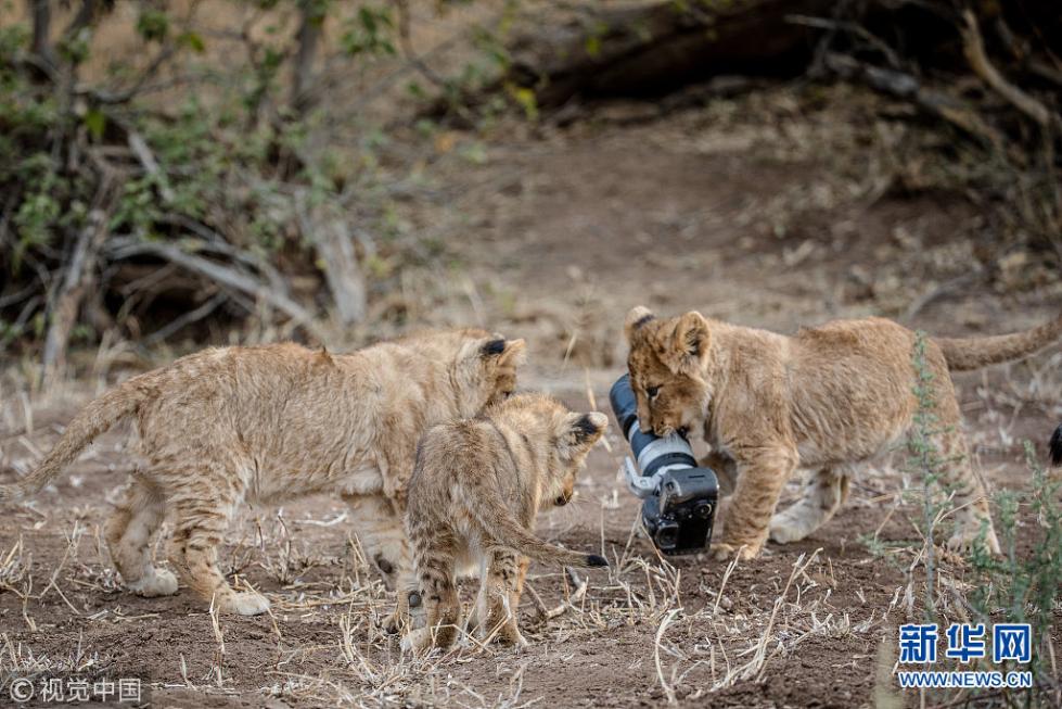 近日,非洲博茨瓦納馬沙圖野生動(dòng)物保護(hù)區(qū)內(nèi)一頭獅子叼起攝影師掉落在地上的相機(jī),之后還將相機(jī)交給小獅子們玩耍,看起來(lái)十分好奇,而攝影師非常無(wú)奈。現(xiàn)年57歲的叢林探險(xiǎn)家Barbara Jensen Vorster在一輛越野車上為馬沙圖野生動(dòng)物保護(hù)區(qū)的獅群拍照時(shí),相機(jī)不小心掉到了地上。砰的一聲響驚動(dòng)了母獅子,它向攝影師方向移動(dòng),迫使探險(xiǎn)隊(duì)撤退。(圖片來(lái)源:視覺(jué)中國(guó))
