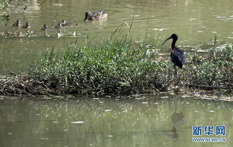 5月21日,一群野鴨從棲息在漢江濕地公園里的一只彩鹮身邊游過(guò)。 近日,國(guó)家二級(jí)保護(hù)動(dòng)物彩鹮現(xiàn)身陜西省漢中市漢江濕地公園濂水河與漢江交匯處。 據(jù)陜西師范大學(xué)生命科學(xué)院教授于曉平介紹,彩鹮在世界上的分布比朱鹮還要少,這幾年在云南發(fā)現(xiàn)得多一些,這3只彩鹮現(xiàn)身漢江濂水河畔,是陜西首次發(fā)現(xiàn)彩鹮蹤跡。 據(jù)了解,彩鹮是國(guó)家二級(jí)保護(hù)動(dòng)物,屬鵜形目鹮科,體羽大部為青銅栗色,是珍稀鳥類朱鹮的“近親”,體型比朱鹮略小。 新華社記者陶明攝