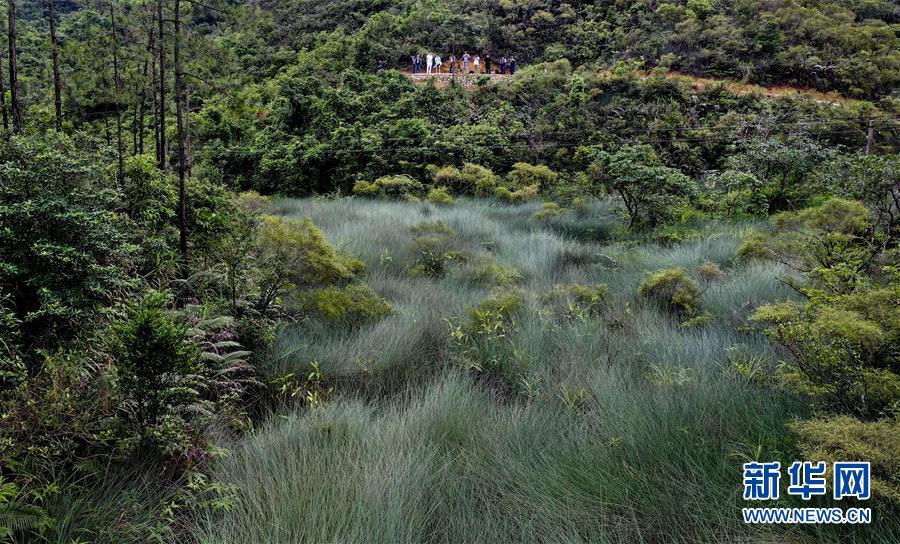 6月1日,游人在香山古驛道旁欣賞富有野趣的“煙波潮涌”景色(無人機(jī)拍攝)。