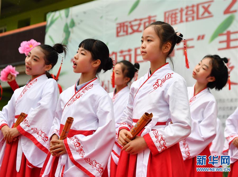 當日,陜西師范大學附屬小學在位于西安的校園里舉行傳統(tǒng)民俗活動迎接即將到來的端午節(jié)。