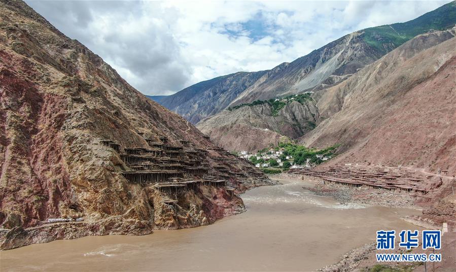 這是位于瀾滄江畔的西藏芒康縣納西民族鄉(xiāng)加達(dá)村的鹽田(6月4日無人機(jī)拍攝)。新華社記者晉美多吉攝