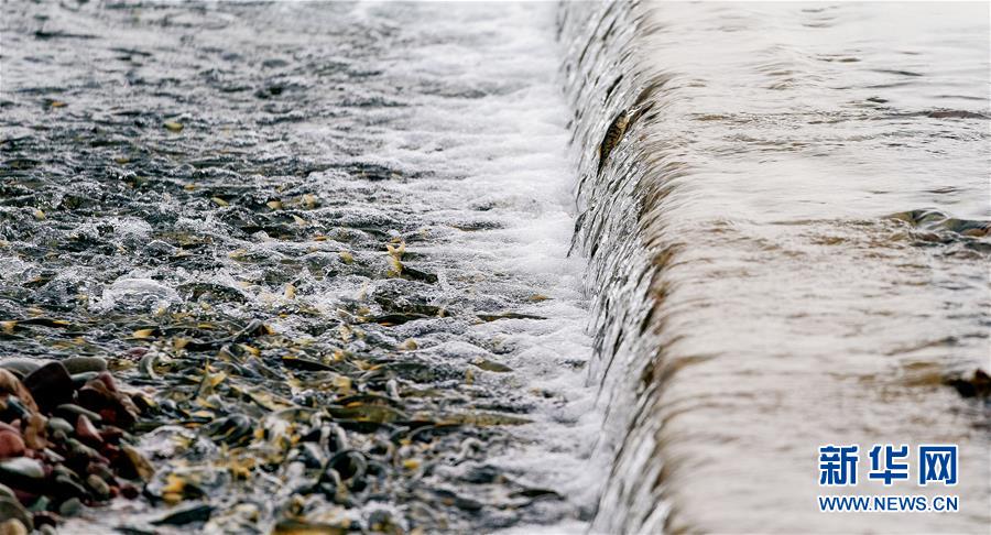 7月6日,青海省剛察縣沙柳河里的湟魚躍起向上洄游。 新華社記者 吳剛攝