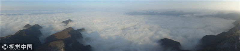 2019年3月3日,陜西商洛,位于鎮(zhèn)安縣的塔云山景區(qū)云海翻騰,宛如仙境。袁景智/視覺中國(guó) 編輯/陳進(jìn)