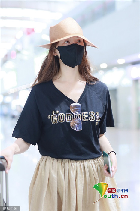 2019年7月23日,上海,林志玲現(xiàn)身機(jī)場(chǎng),穿著打扮與三天前在臺(tái)北機(jī)場(chǎng)相比毫無(wú)變化,依舊身穿黑體恤搭配米色休閑褲,墨鏡也依舊掛在胸前。