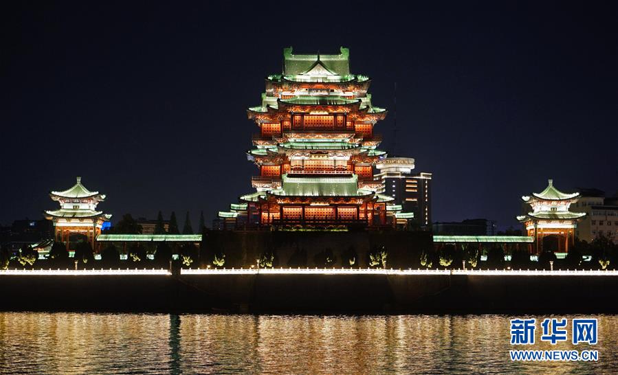 這是江西南昌贛江畔上演的燈光秀(8月6日攝)。 夏季,江西南昌市贛江畔高樓燈光璀璨,五光十色的燈光組成了壯觀的燈光秀,吸引了大批游客。據(jù)介紹,近年來,南昌為發(fā)展“夜經(jīng)濟(jì)”,著力打造夜游項(xiàng)目,夜游項(xiàng)目以滕王閣為核心,借助贛江兩岸景觀照明,結(jié)合同步音效,打造立體、動(dòng)態(tài)、富有江西元素的風(fēng)景,讓游客感受夜景的美麗和江西的歷史文化。 新華社記者 萬象 攝