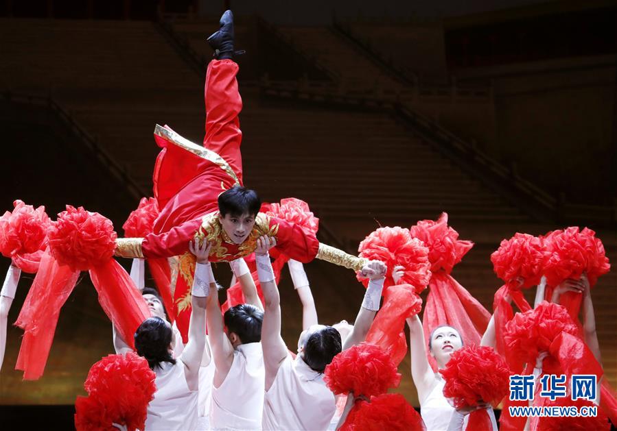 8月7日晚,舞蹈演員們?cè)诒硌葜小?nbsp; 新華社記者 劉穎 攝