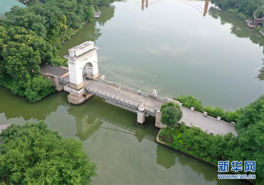 桂林市榕湖上的橋梁(7月1日無人機(jī)拍攝)。 夏日時(shí)節(jié),廣西桂林市區(qū)內(nèi)的榕湖、杉湖、桂湖、木龍湖等地綠樹成蔭、景色迷人。 新華社記者陸波岸攝