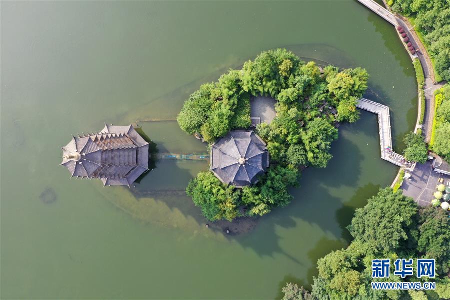 桂林市榕湖景觀(7月1日無人機(jī)拍攝)。 夏日時(shí)節(jié),廣西桂林市區(qū)內(nèi)的榕湖、杉湖、桂湖、木龍湖等地綠樹成蔭、景色迷人。 新華社記者陸波岸攝