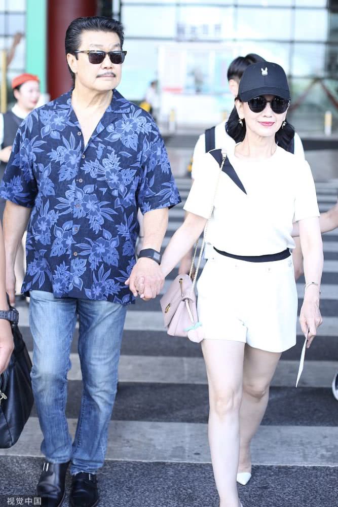 2019年8月10日,北京,趙雅芝與老公黃錦燊現(xiàn)身機場。