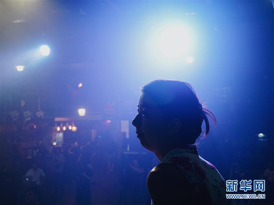 8月14日,8772樂(lè)隊(duì)成員在演唱會(huì)前排練。新華社發(fā)(崔博文攝)
