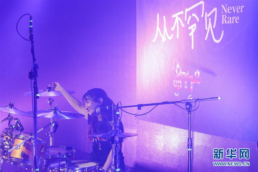 8月14日,8772樂隊發(fā)起人、隊長王奕鷗在演唱會上表演。新華社記者張玉薇攝