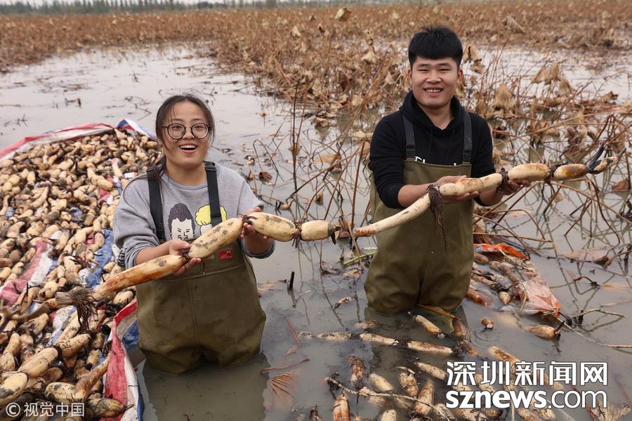 藕農(nóng)泥中“掘金”初秋時(shí)節(jié)采藕忙
